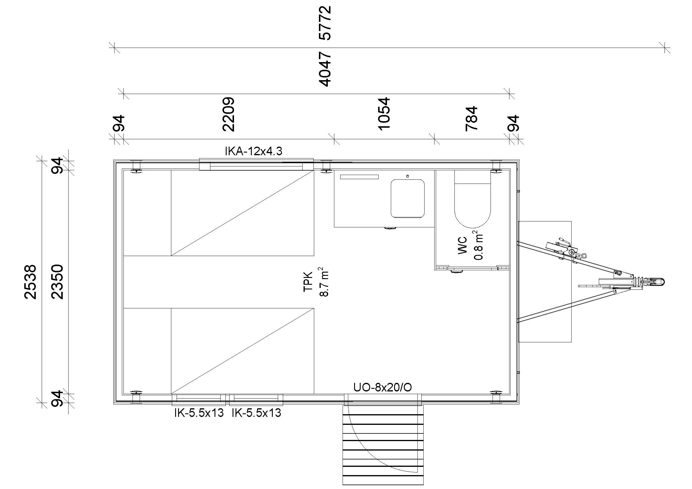 – Lämpöikkunat 2k karkaistu, 5,5×13 2 kpl, avattava tuuletusikkuna 12×4,3 1 kpl