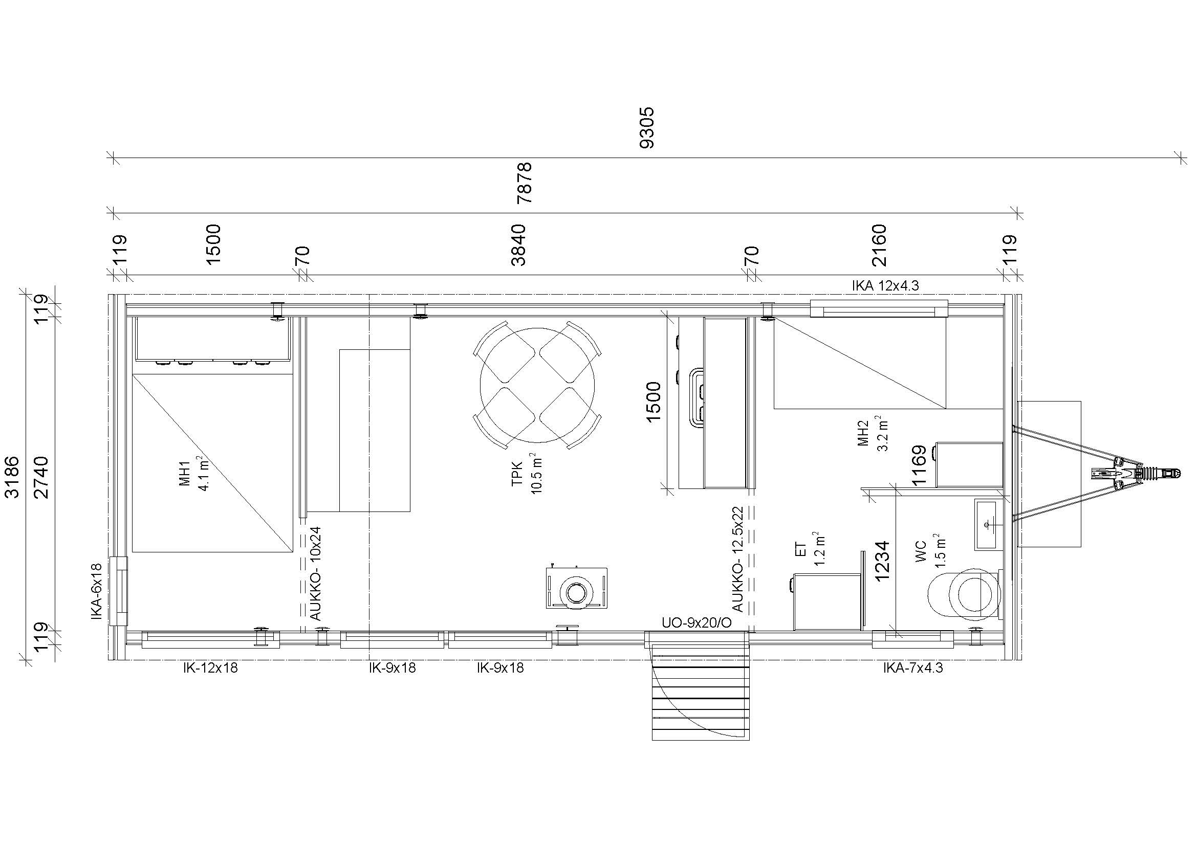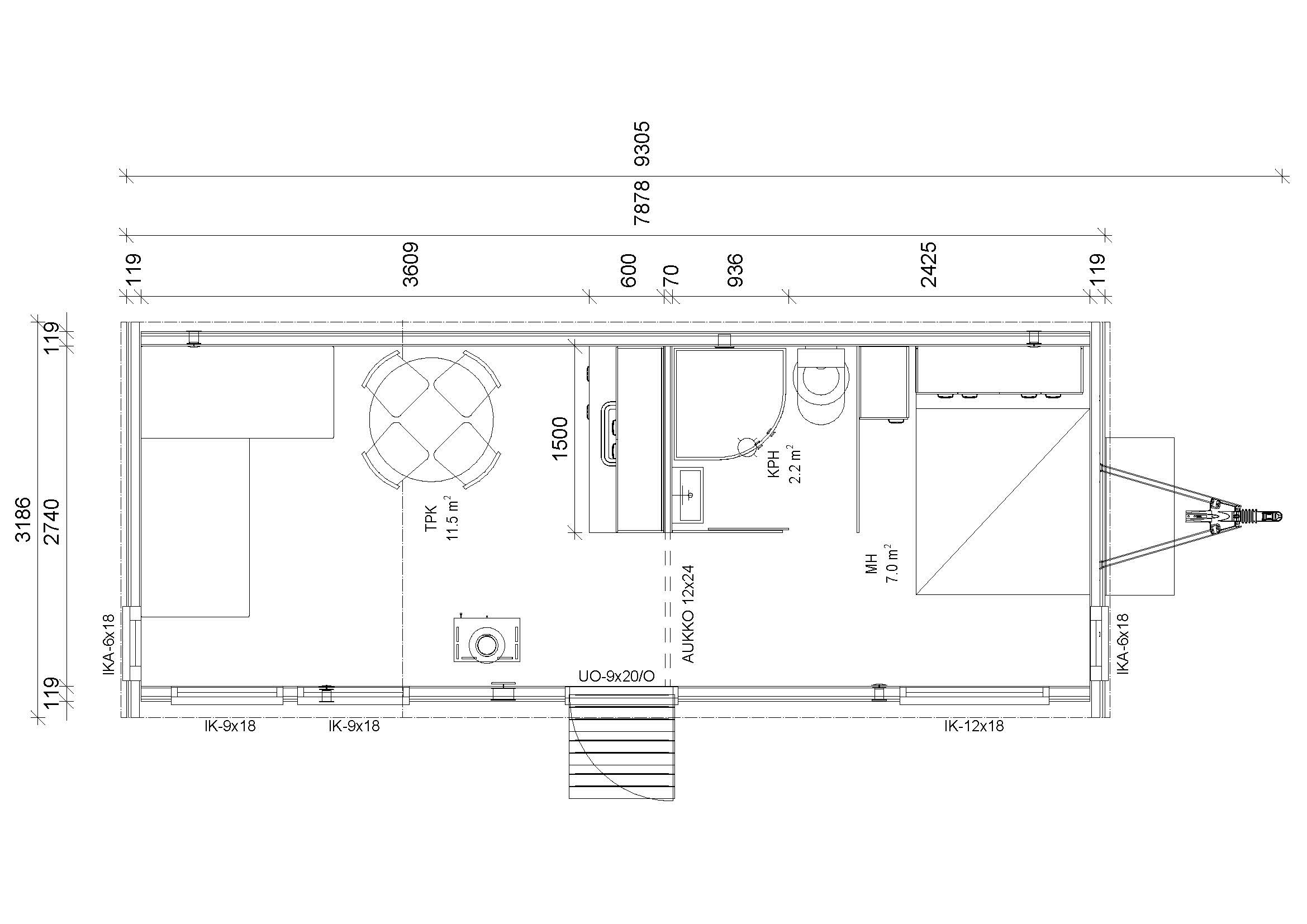 - Avattavat tuuletusikkunat perällä ja takaseinässä