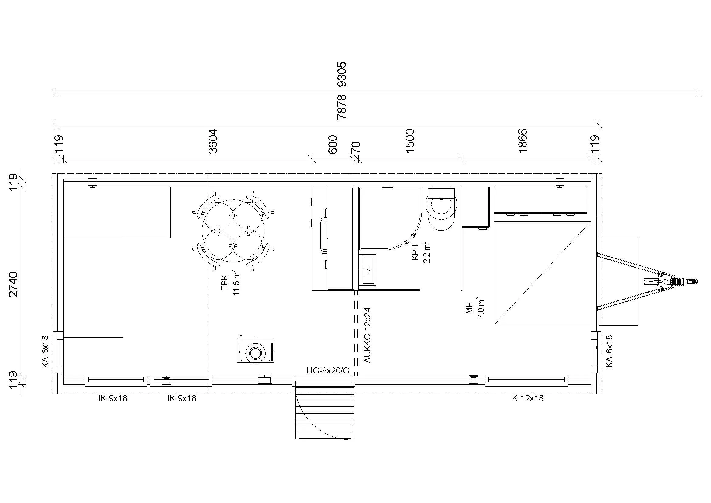 – Avattava 2k tuuletusikkuna 6 x 18 mh:ssa, 12 x 4,3 keittiössä ja saunassa