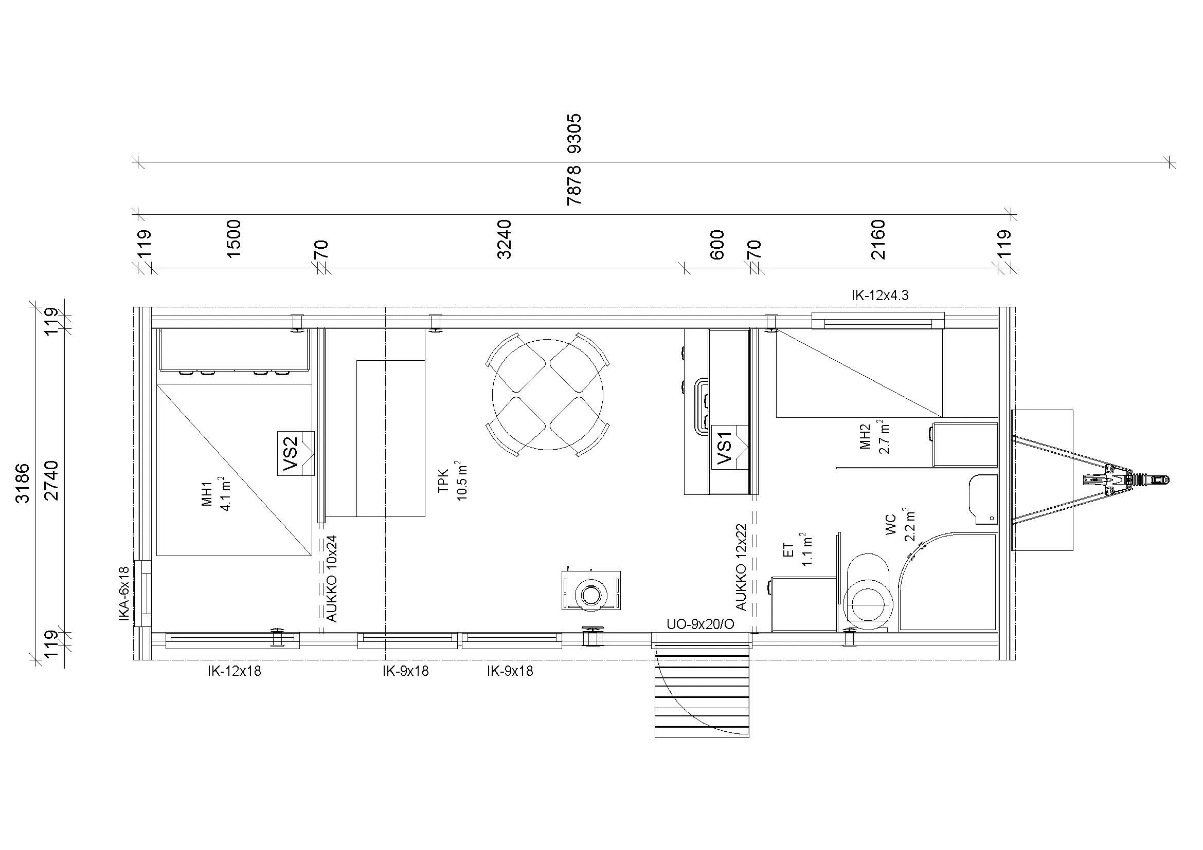 VAUNUMÖKKI XXL KAHDELLA MAKUUHUONEELLA (A-MALLI)